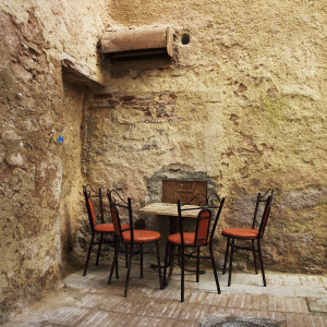 Da ich die Sitzgelegenheiten in einem Zustand des „nicht von Menschen besetzt seins“ fotografisch festhielt, war sehr oft ein längerer Warteprozess bis zum Fotografieren erforderlich, weil auf den Sitzgelegenheiten Menschen saßen. Diese mit einem längeren Warteprozess verbundene fotografische Vorgehensweise führte bei mir zwangsläufig zu einer entschleunigenden Wirkung. Der Trubel, der Lärm und die Geschwindigkeit der Realität wich einer angenehmen Ruhe. Und dieses Gefühl des Innehaltens, des Zeithabens repräsentieren für mich die leerstehenden Sitzgelegenheiten, so als ob sie den Betrachter dazu einladen, auf ihnen Platz zu nehmen, um wieder Atem zu holen, um sich wieder neu zu orientieren.